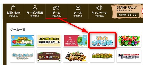 メニューより「ゲームで貯める > ポコポコもぐらたたき」をクリックします。