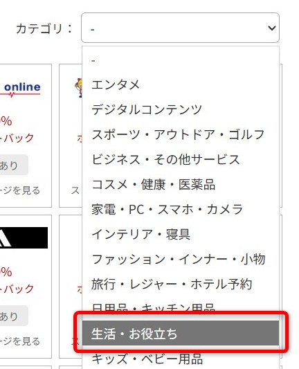 (スマホの場合は「お買い物・利用で貯める>通販・お買い物」をタップしてみてください)