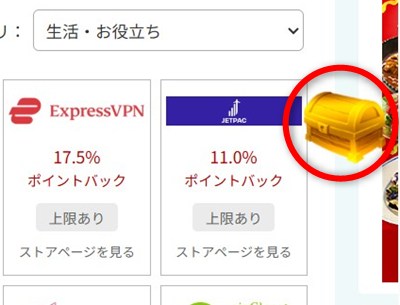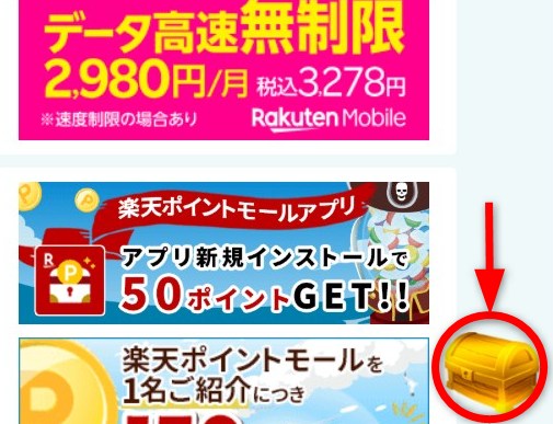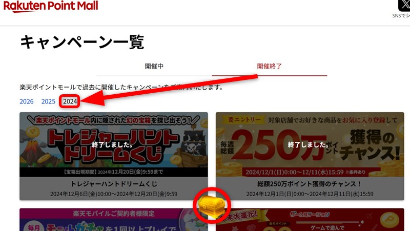 楽天トレジャーハントドリームくじの宝箱があった場所 2024年12月
