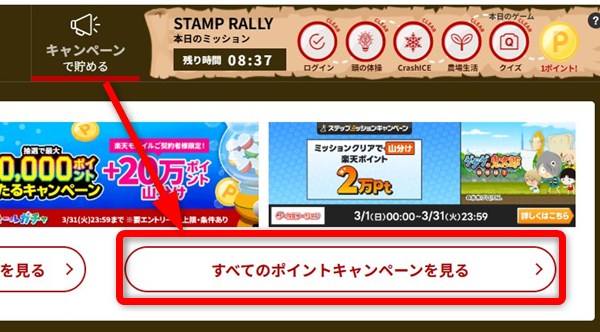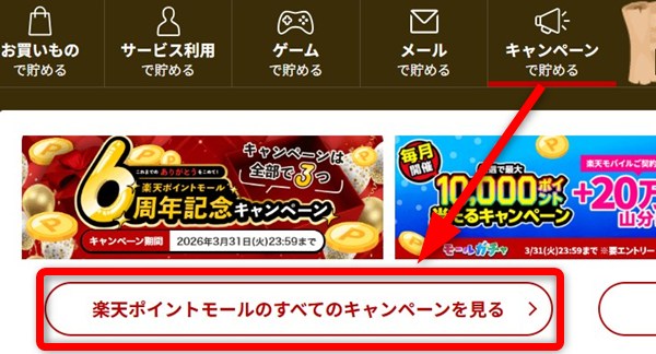 キャンペーンで貯める>すべてのポイントキャンペーンを見る
