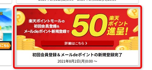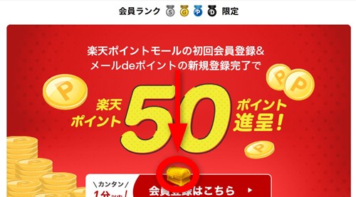 キャンペーンで貯める>楽天ポイントモールのすべてのキャンペーンを見る>初回会員登録&メールdeポイントの新規登録完了