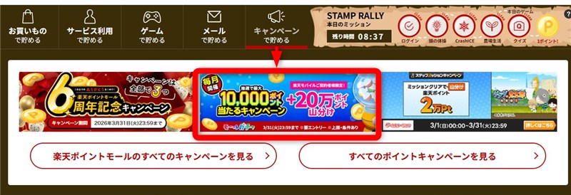 キャンペーンで貯める>楽天ポイントモールのすべてのキャンペーンを見る>開催終了>2024
