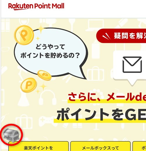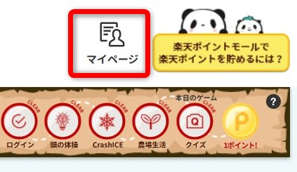 楽天ポイントモールトップページなどから「マイページ」をクリック。