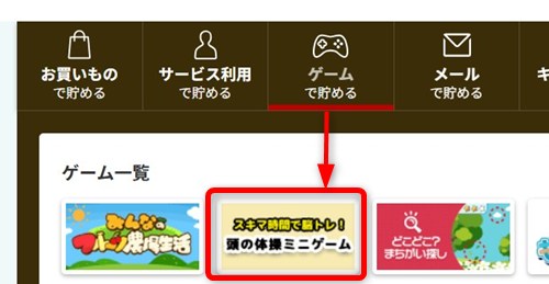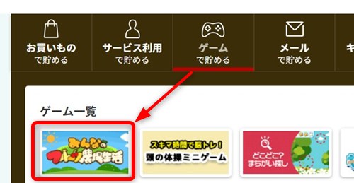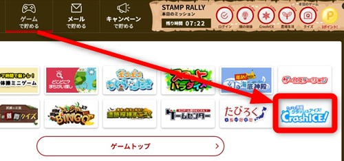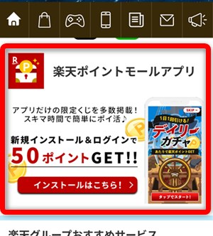 楽天ポイントモールトップページから、ゲームのトップページに行きます。