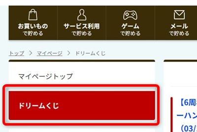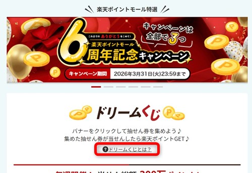 (楽天ポイントモールの)マイページ>ドリームくじ